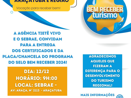 Sebrae-SP entrega Selo Bem Receber 2024 em Araçatuba e Andradina