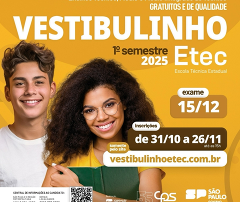 Administração Noturno: Inscrições para o Vestibulinho da ETEC vão até dia 26