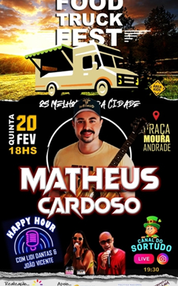 Assessoria de Comunicação O Food Truck Fest segue o mês de fevereiro com a apresentação de Mateus Cardozo hoje (20)…