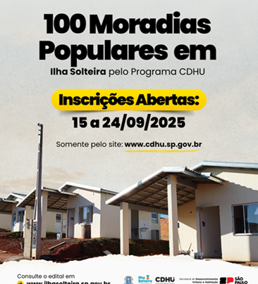 Assessoria de Comunicação Nesta segunda-feira, 15, serão abertas as inscrições para o empreendimento habitacional Ilha Solteira-D, que contará com 100…