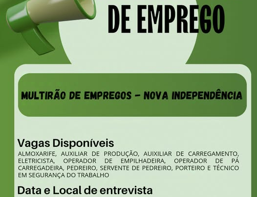 “oportunidade será na próxima quarta-feira na escola Gildo Pereira” José Carlos Bossolan A Prefeitura de Nova Independência em parceria com…