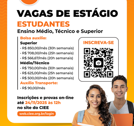 Prefeitura abre vagas de estágio para estudantes de Ensino Médio, Técnico e Superior em diversas áreas