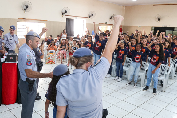 Durante a cerimônia, houve homenagens calorosas a todos que têm contribuído para o sucesso deste importante projeto, que se estende por seis meses e é realizado com o apoio incondicional da Polícia Militar. A instrutora do programa, a policial militar, cb Cristiane Antonine, foi um exemplo de dedicação e comprometimento, guiando os alunos ao longo desse período, ensinando-lhes sobre os riscos das drogas e a importância de escolhas saudáveis.