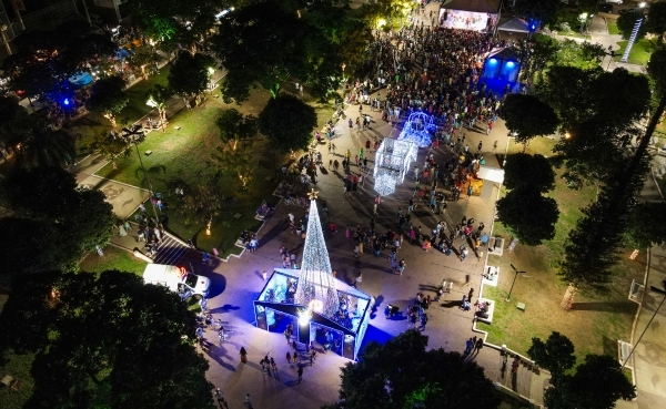 Andradina inaugurou na noite deste sábado (23) a árvore oficial do Natal Encantado 2024. A árvore e a decoração natalina da Praça Moura Andrade encantou o público de milhares de pessoas que estiveram na praça embalados pelas apresentações do Complexo Royale, no espetáculo “Assim como no Cinema”. A inauguração da iluminação Natalina contou com a presença do presidente da Câmara e vice prefeito eleito, Lucas Lopes, do secretário de Esportes Cultura, Lazer e Juventude, Rogério Casonato, de educação Estela Goda, de Assistência Social, Silvana Silva e Obras, Geraldo Pilla e dos vereadores, Fabrício Mazotti e Luzimar Rodrigues.
