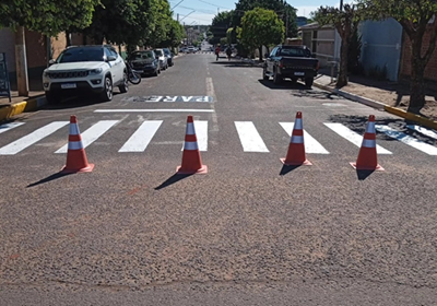 Secretaria de Obras de Castilho realiza trabalho de sinalização e manutenção no centro da cidade