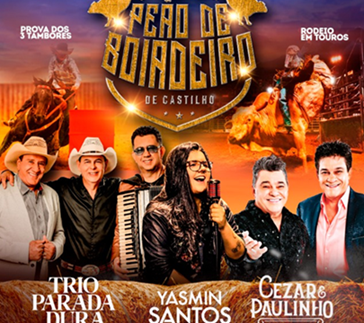 Prefeitura de Castilho inicia venda de camarotes para a 29ª Festa do Peão; Trio Parada Dura, Yasmin Santos e Cesar & Paulinho estão confirmados