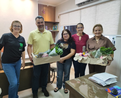 Secretária recebe cesta da “fazenda escola”