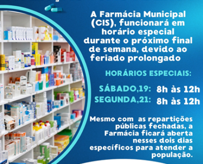 Farmácia Municipal de Castilho funcionará em horário especial durante feriado prolongado