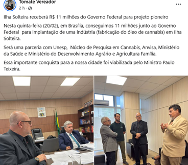Ilha Solteira deverá ter fábrica de óleo de cannabis, anuncia vereador