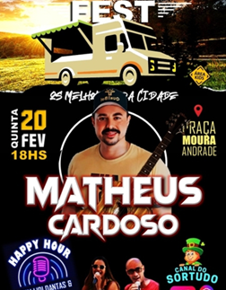Assessoria de Comunicação O Food Truck Fest segue o mês de fevereiro com a apresentação de Mateus Cardozo hoje (20)…
