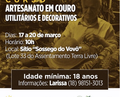 Aprendizado MASTER: Secretaria de Agricultura dará curso gratuito de Artesanato em Couro