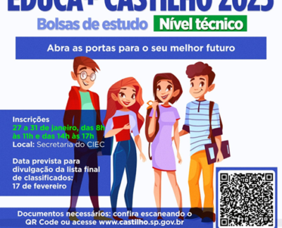 Castilho publica Edital de concessão de Bolsas de Estudo para Cursos Técnicos