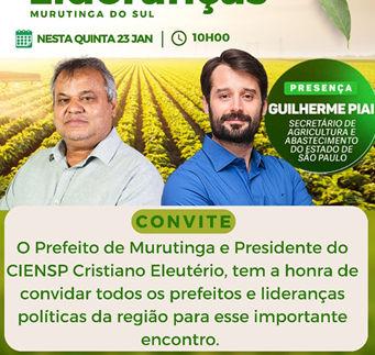 “evento será às 10h na Câmara de Murutinga do Sul” José Carlos Bossolan Na próxima quinta-feira (23/01), às 10h na…