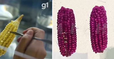 “O g1 foi até Campinas (SP) conhecer a pesquisa. Na fase de testes, alimento tem a cor roxa, que destaca…
