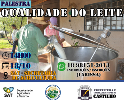 SAT e COAPAR farão palestra sobre qualidade do leite em Castilho