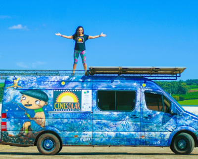 Furgão do CineSolar estaciona em Santópolis do Aguapeí com sessões de cinema movido a energia solar, pipoca e atrações de graça para todos