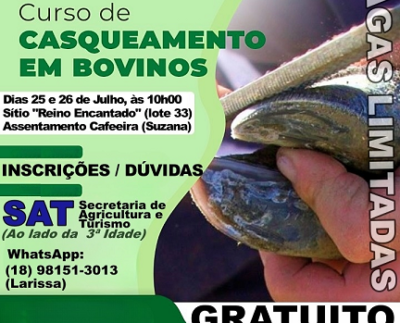 Inscrições para curso gratuito de Casqueamento em Bovinos estão abertas