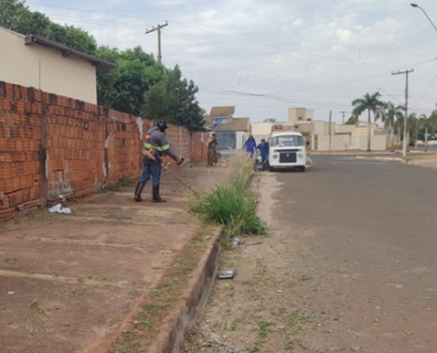 Prefeitura de Andradina intensifica limpeza de mato em guias e calçadas