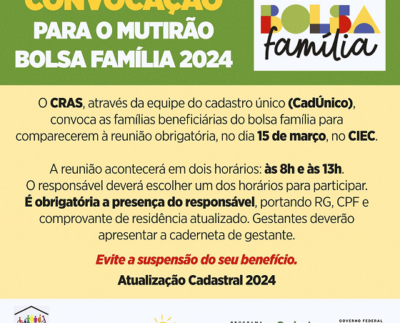Prefeitura de Castilho convoca beneficiários do Bolsa Família para reunião obrigatória