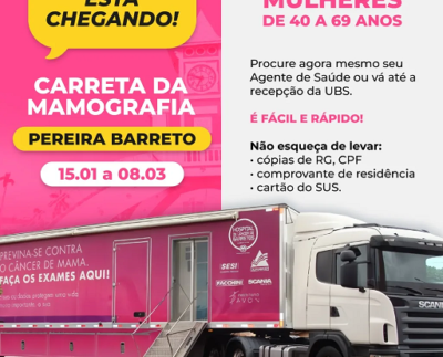 Assessoria de Comunicação A Carreta do Hospital do Amor de Barretos chegará em Pereira Barreto na próxima segunda-feira (15). Ela…