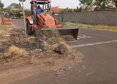Prefeitura realiza limpeza de guias e canteiros na cidade