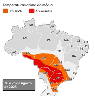 “Fenômeno deve elevar temperaturas até o fim de semana em capitais como São Paulo, Rio de Janeiro e Cuiabá, que…