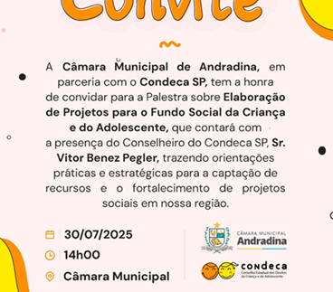 Assessoria de Comunicação A Câmara Municipal de Andradina, em parceria com o Condeca-SP (Conselho Estadual dos Direitos da Criança e…