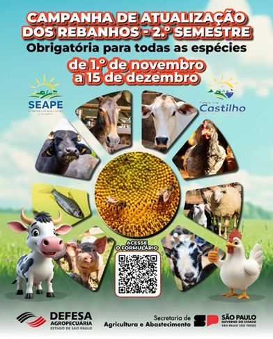 Marco Apolinário/JPN A Secretaria de Agricultura e Pecuária de Castilho está reforçando o aviso aos pecuaristas do município que termina no dia 31 de dezembro o prazo para vacinar todas…