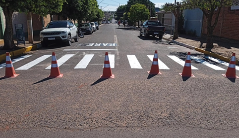 Assessoria de Comunicação A equipe da Secretaria de Obras de Castilho vem realizando mais um importante trabalho no centro da cidade, com a demarcação da sinalização, faixas de pedestres, PARE…