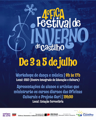 Assessoria de Comunicação Entre os dias 3 e 5 de julho a Secretaria Municipal de Educação, Cultura e Desporto realizará a 4ª edição do FICA (Festival de Inverno de Castilho).…