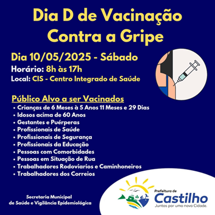 Read MoreCastilho adere campanha estadual e fará dia D contra gripe Influenza