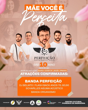 Assessoria de Comunicação Em comemoração ao “Dia das Mães” (segundo domingo de maio), a Aliança Artística Andradinense vai realizar no dia 10, às 19 horas, um show com a “Banda…