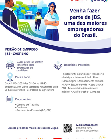 José Carlos Bossolan O Balcão de Emprego, em parceria com a Secretaria do Desenvolvimento Econômico e Trabalho e a Prefeitura Municipal de Castilho, convida populares que estejam buscando oportunidade de…