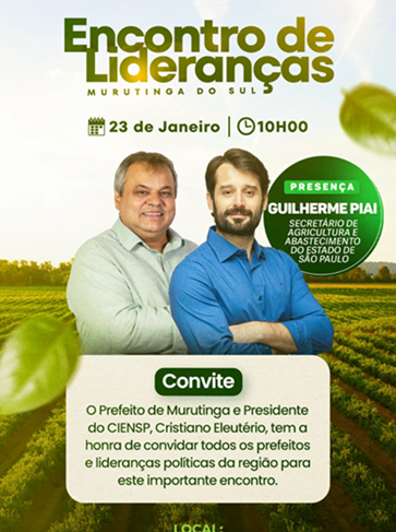 “evento com lideranças regionais será na Câmara de Murutinga do Sul na quinta-feira” José Carlos Bossolan O prefeito de Murutinga do Sul e presidente do Ciensp (Consórcio Intermunicipal do Extremo…