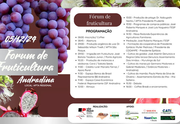 “evento será realizado na APTA de Andradia em dia 5 de dezembro” José Carlos Bossolan Dia 5 de dezembro às 8h, Andradina receberá o Forum de Fruticultura na sede da…