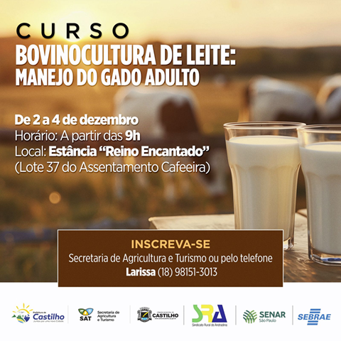 Assessoria de Comunicação Os pecuaristas castilhenses pediram e a SAT – Secretaria de Agricultura e Turismo de Castilho firmou uma nova parceria para capacitá-los sobre “Manejo do Gado Adulto” destinado…