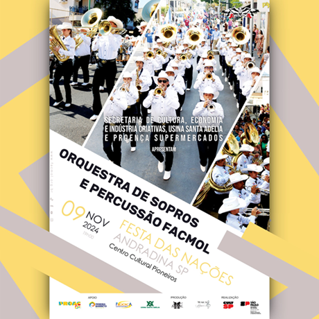 Assessoria de Comunicação No dia 09 de novembro, às 19h, a Orquestra de Sopros e Percussão Facmol se apresentará no Centro Cultural Pioneiros, em Andradina, como parte da 3ª Festa…