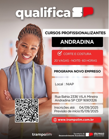 Assessoria de Comunicação A Prefeitura de Andradina está com inscrições abertas para o Curso de Corte e Costura em parceria com o Qualifica São Paulo. A ação tem como objetivo…