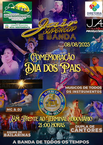“banda Jair Supercap Show se apresentará novamente no município” José Carlos Bossolan A Prefeitura de Nova Independência, estará realizando um show em alusão a comemoração ao dia dos Pais, comemorado…