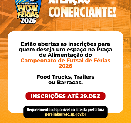 Prefeitura de Pereira Barreto lança Edital para Trailers e Lanchonetes na Praça de Alimentação no Futsal de Férias 2026