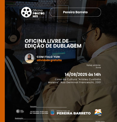 Oficina gratuita de edição de dublagem será realizada em Pereira Barreto por meio do programa Pontos MIS