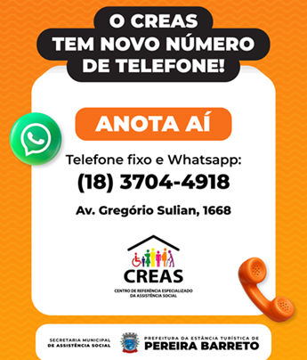 Assessoria de Comunicação O Centro de Referência Especializado de Assistência Social (CREAS) de Pereira Barreto está com um novo número de telefone para atendimento…