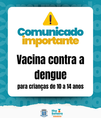 Vacina contra a dengue disponível para crianças e adolescentes de 10 a 14 anos em Ilha Solteira