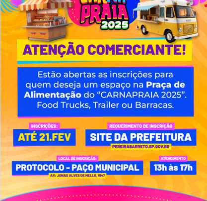 Prefeitura libera Requerimento de Inscrição para a Praça de Alimentação do CarnaPraia 2025