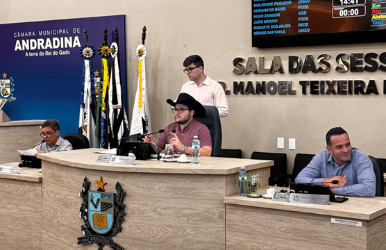 A Câmara de Andradina realizou a 36ª Sessão Ordinária nesta segunda-feira (11). O presidente vereador Lulas Lopes (PSDB) comandou os trabalhos, que foram marcados pela aprovação de três projetos, em regime de urgência, e também apresentação de requerimentos e indicações. Um dos projetos aprovados foi apresentado pelo vereador Hugo Zamboni (MDB) que concede o título de Cidadão Andradinense ao senhor Diogo Soares Cunha Melo, tabelião do TJSP.