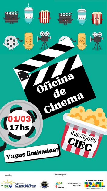 No dia 1º me Março (sexta-feira da semana seguinte), às 17hs, a sala de Novas Mídias do CIEC – Centro Integrado de Educação e Cultura de Castilho, recebe uma oficina inédita de cinema para crianças e adolescentes. O curso de iniciação é voltado ao público de 10 a 17 anos que deseja aprender mais sobre a sétima arte.