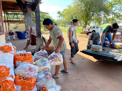 Segundo o estudo, além de estarem em uma situação de vulnerabilidade social e enfrentarem atos de violência, os Avá-Guarani também não têm acesso às políticas públicas que garantem a alimentação, fazendo com que a maioria da comunidade faça apenas uma refeição por dia. Sabendo disso, a SEPOCS da CONAFER, em parceria com o Instituto Terra e Trabalho (ITT) e a União Nacional Indígena (UNI), se mobilizou para apoiar o povo Avá-Guarani com a doação de 92 cestas básicas e 15 fardos de água potável. No dia 18 de janeiro, os colaboradores da SEPOCS entraram no território escoltados pela Força Nacional e entregaram as doações na aldeia Yhovy, em Guaíra, Paraná, que conta com uma população de 2 mil pessoas. No total, 132 famílias foram beneficiadas.