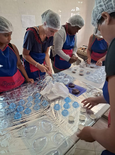 As mulheres atendidas pelo CREAS – Centro de Referência Especializado de Assistência Social, participaram de uma oficina de chocolate ministrada pela confeiteira Jeane Felix de Almeida. A ideia da oficina surgiu da própria confeiteira que disponibilizou seu conhecimento para oferecer um espaço de aprendizado e produção de chocolates às mulheres atendidas pelo CREAS.