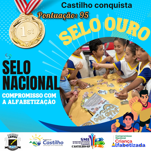 O MEC divulgou hoje (05) o resultado oficial do Selo Nacional de Compromisso com a Alfabetização, e Castilho foi contemplado com essa importante conquista, alcançando a pontuação 95, numa métrica de mínimo 85 e máximo 100 pontos. Essa política é uma iniciativa de grande relevância promovida em regime de colaboração entre a União e os entes federados.