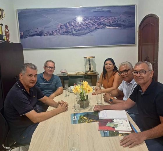 O prefeito Serginho Prado (Nenzinho), o vice-prefeito Donizete, a presidente da Câmara Municipal, Cátia Abreu, o presidente do PL municipal, Fabiano Araújo e o ex-prefeito de Itapura, Fábio Dourado participaram da primeira reunião oficial entre o executivo e o legislativo da cidade. O encontro, marcado por tranquilidade e alinhamento, definiu o tom que deverá guiar as ações políticas durante o atual mandato: trabalho conjunto e dedicação à comunidade.